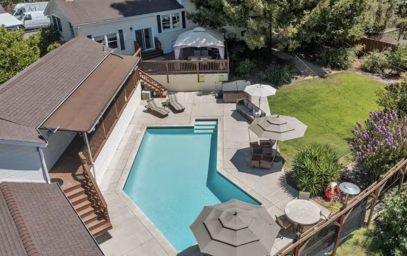 This beautifully updated 4-bedroom, 2.5-bath home that sleeps 8, is designed for comfort, style, and relaxation. With spacious interiors and a seamless flow to the backyard, you'll enjoy the perfect mix of indoor-outdoor living. The home features modern finishes, a fully equipped kitchen, and plenty of space for gathering. Step outside to a stunning backyard retreat with a hot tub, lounge areas, and lush surroundings—ideal for sipping wine under the stars or enjoying Napa’s sunny days with friends and family.